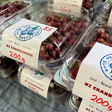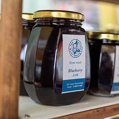 We grow mostly blueberries, but also currants, gooseberries, all sorts of brambles and anything else I can get my hands on and is willing to grow in Taranaki soils. (Such as roughly 250 trees of stonefruit, pipfruit, nuts and citrus fruit). Some of our produce we sell fresh, some we process and sell the resulting preserves, together with traditional sourdough bread and gluten and dairy free baking.